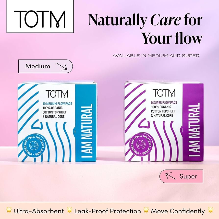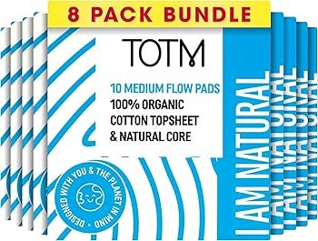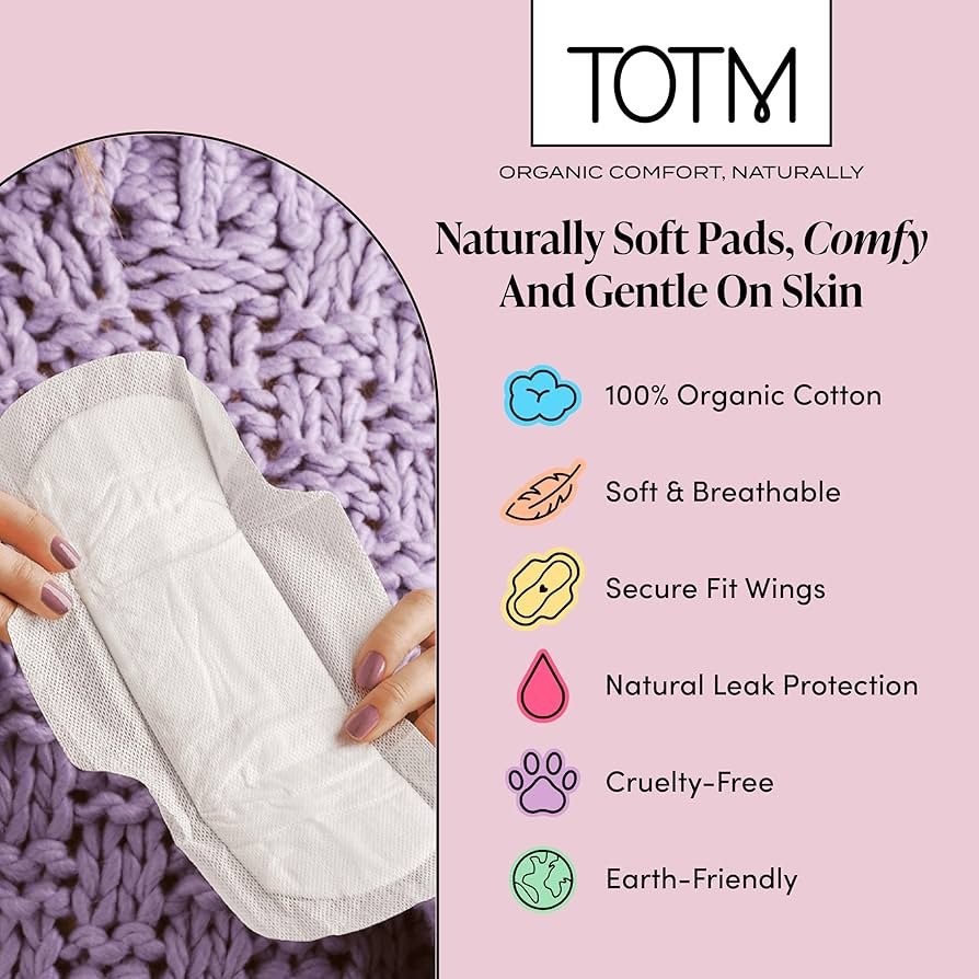 TOTM Natural Pads with Organic Cotton & Renewable Woodpulp | Medium – Pack of 80 | Breathable Period Care with Secure Wings & Compostable Wrappers | Eco-Conscious & Gentle Sanitary Towel 80